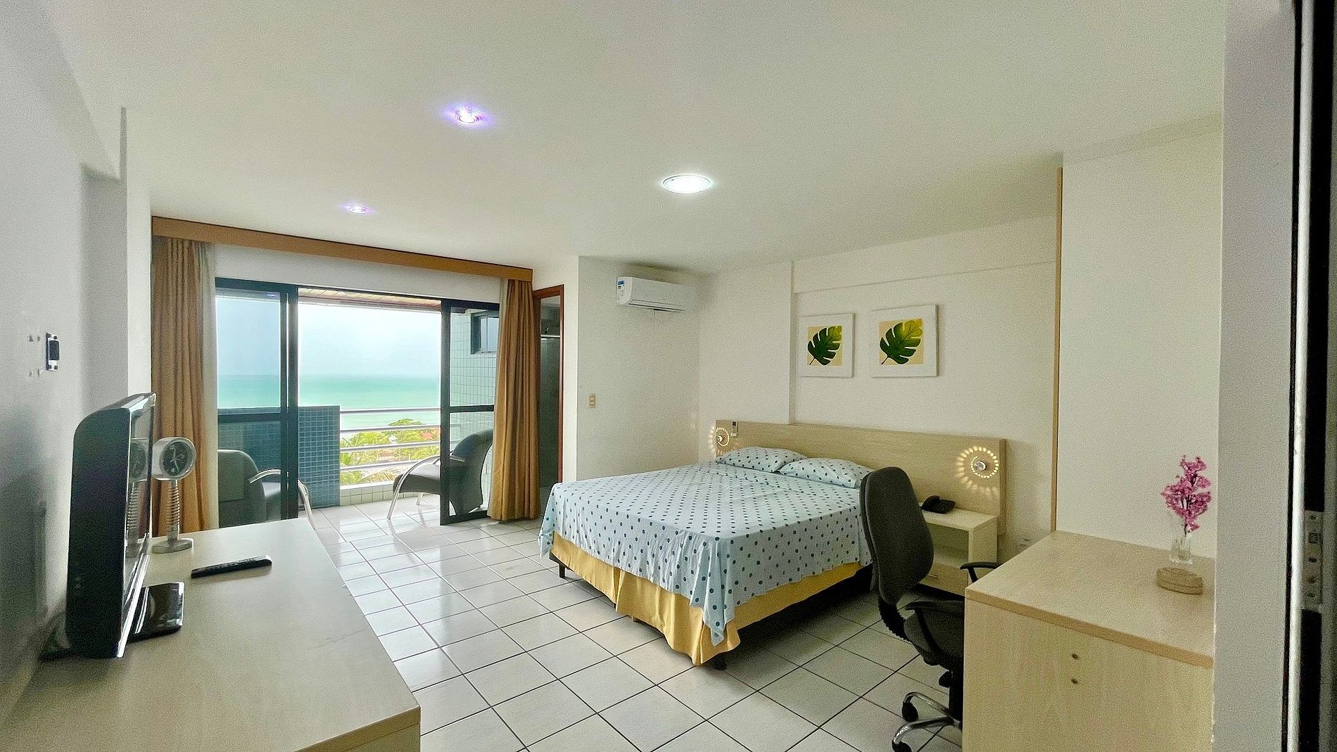 * Apartamento com Varanda com Vista para o Mar e Ar Condicionado Split.
