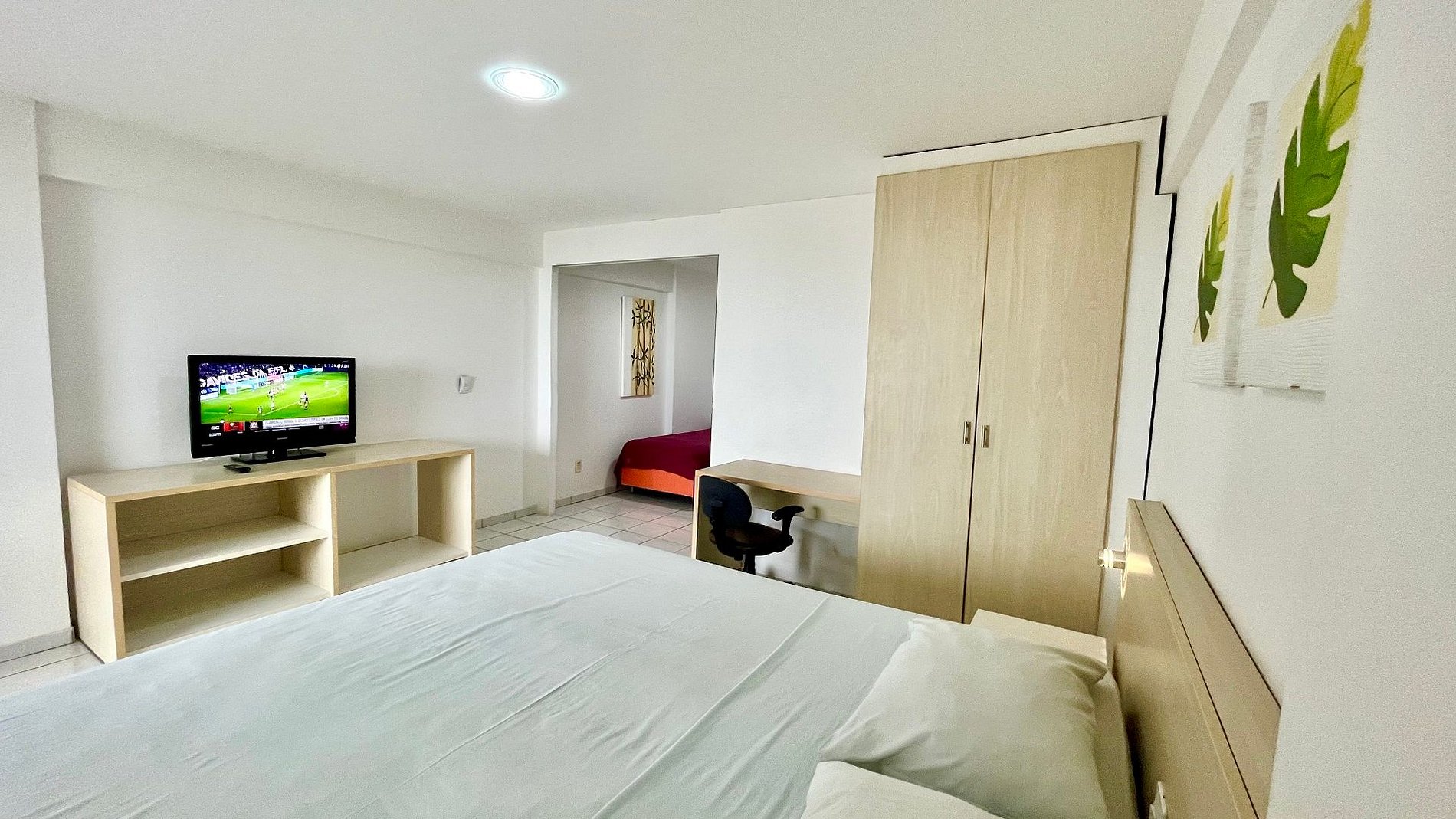 Cercado por excelentes bares, restaurantes e bem próximo do Centro de Convenções de Natal. Nossas acomodações possuem decoração moderna e com uma linda vista para o mar (Orla de Ponta Negra). Aqui o hóspede tem o privilégio de aproveitar a melhor vista da cidade. Além disso, a conexão à internet não será problema durante a estadia, pois o Paradise Flat oferece wi-fi gratuito aos hóspedes com mesa de trabalho.