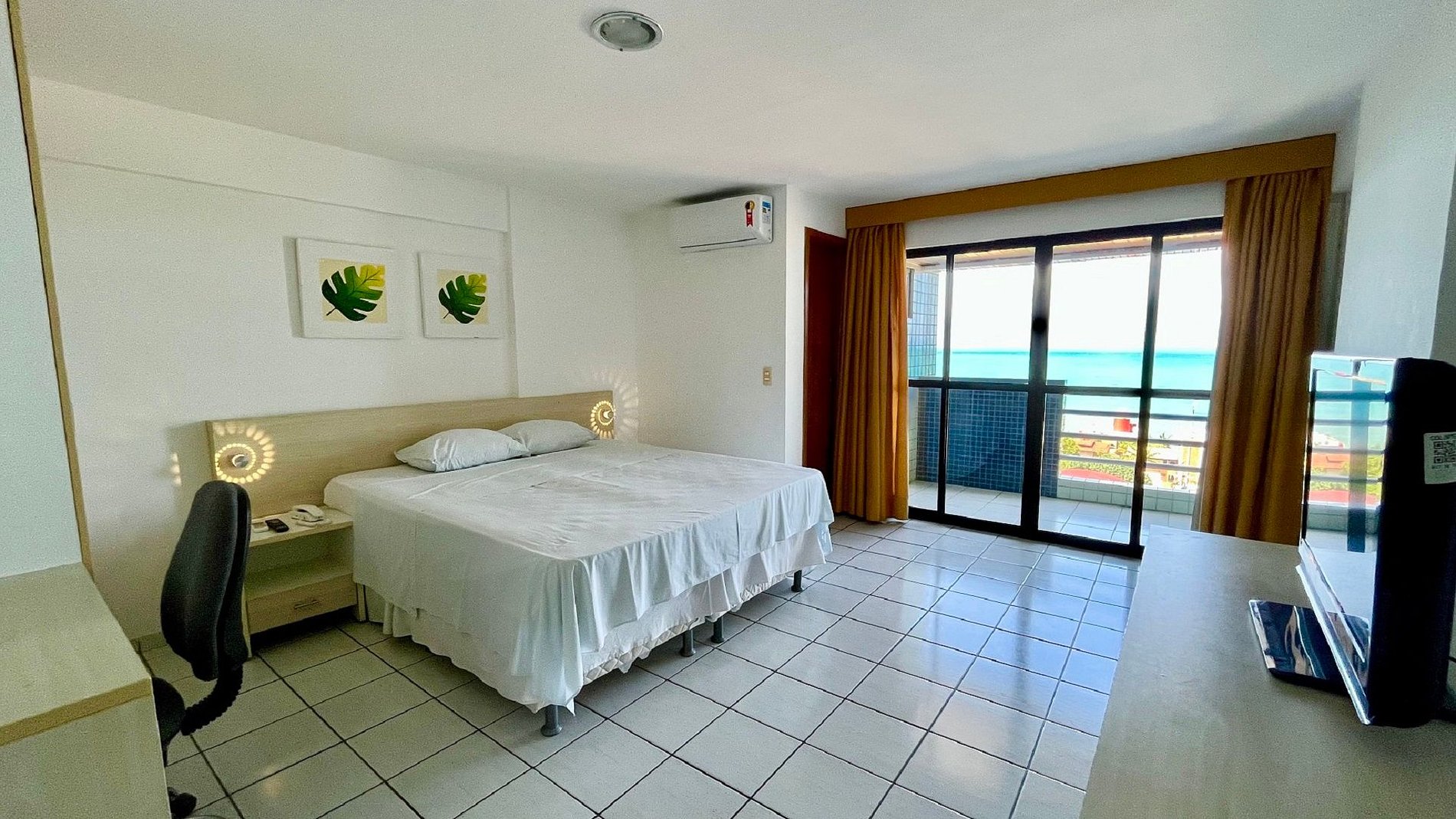* Apartamento com Varanda com Vista para o Mar e Ar Condicionado Split.