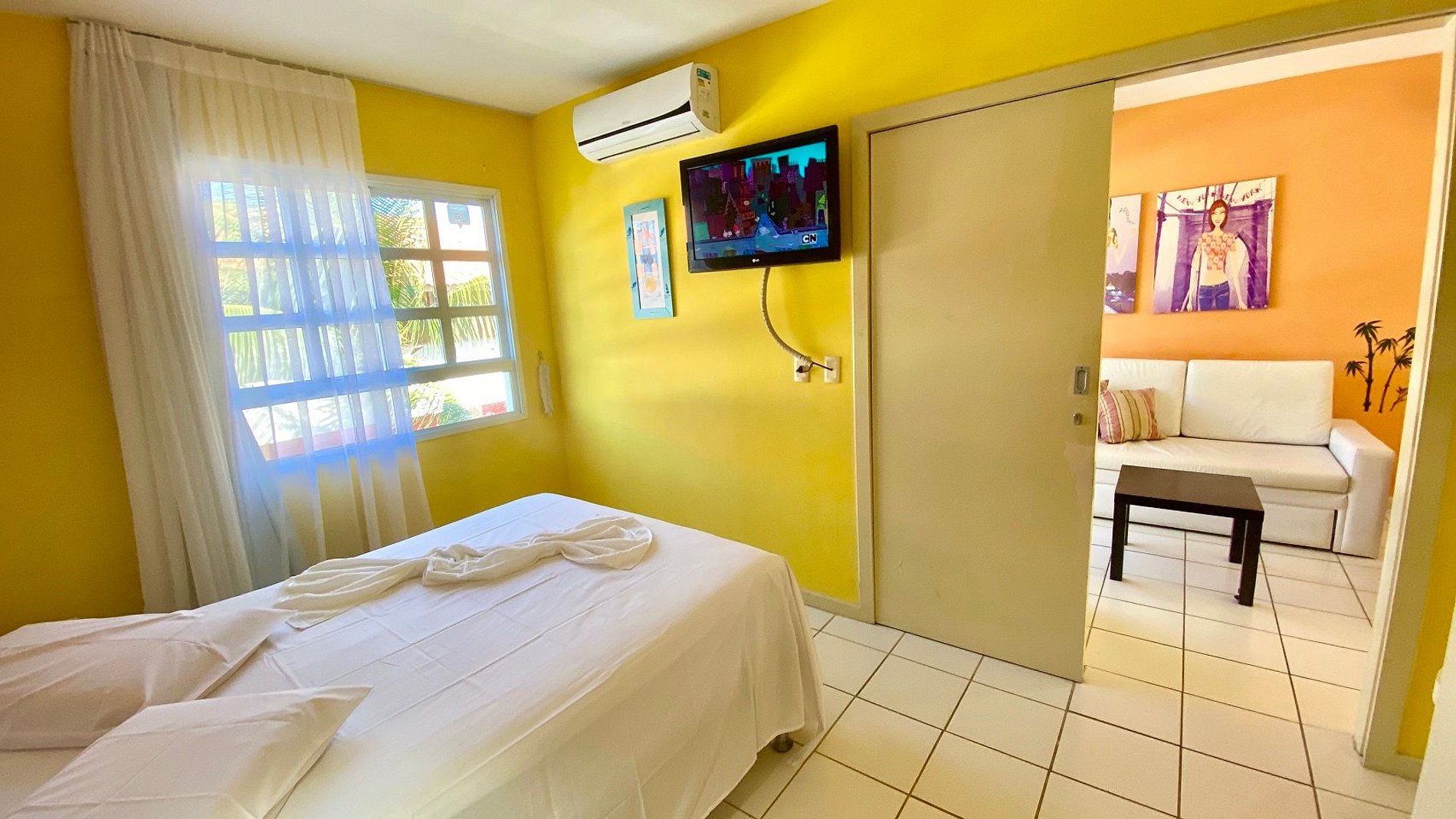 Suite com cama de casal, Ar acondicionado split.