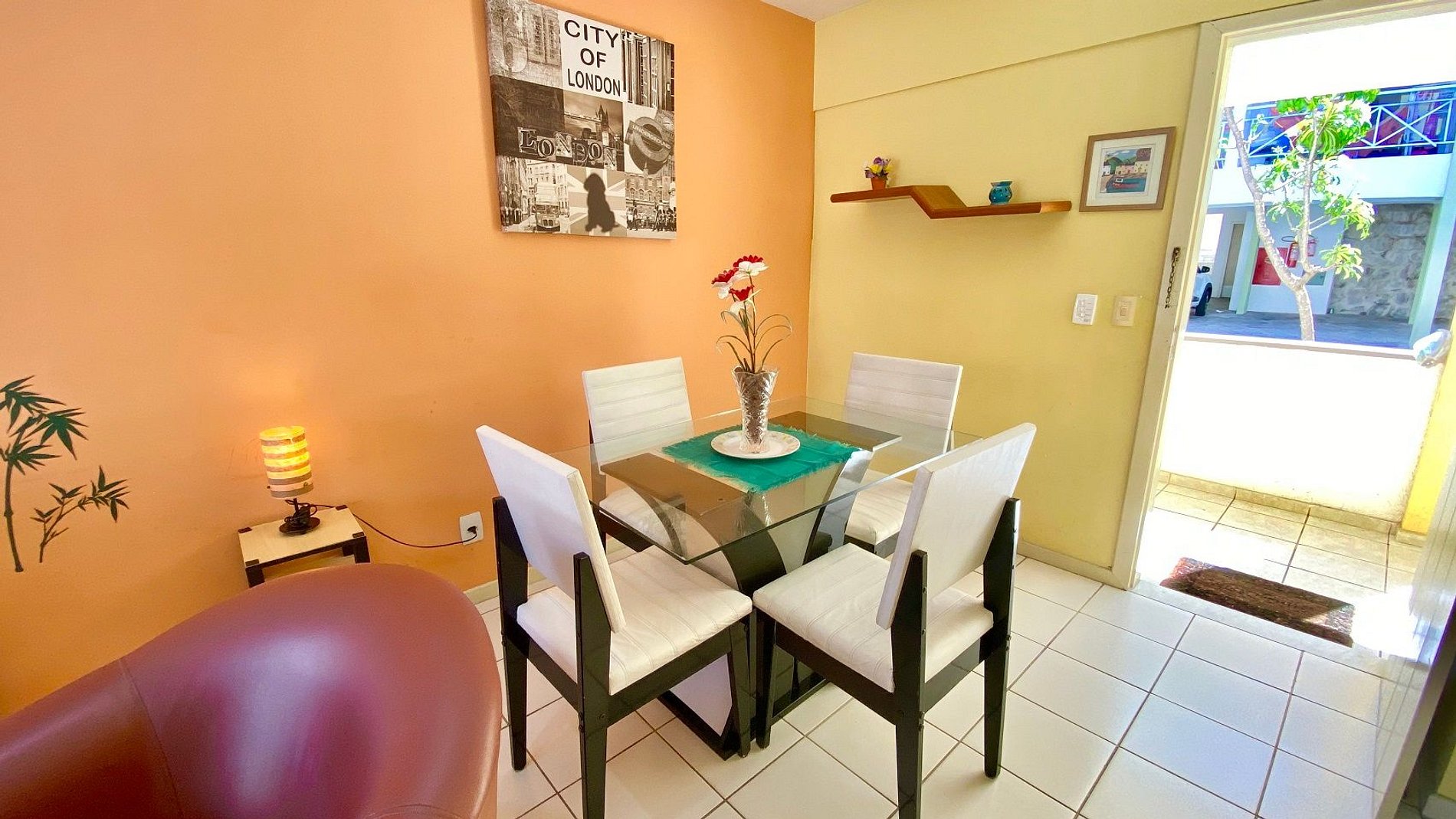 •Sala com sofá, TV Led (2) , DVD divx, Aparelho de som, Mesa Almoço/Jantar e 4 cadeiras.