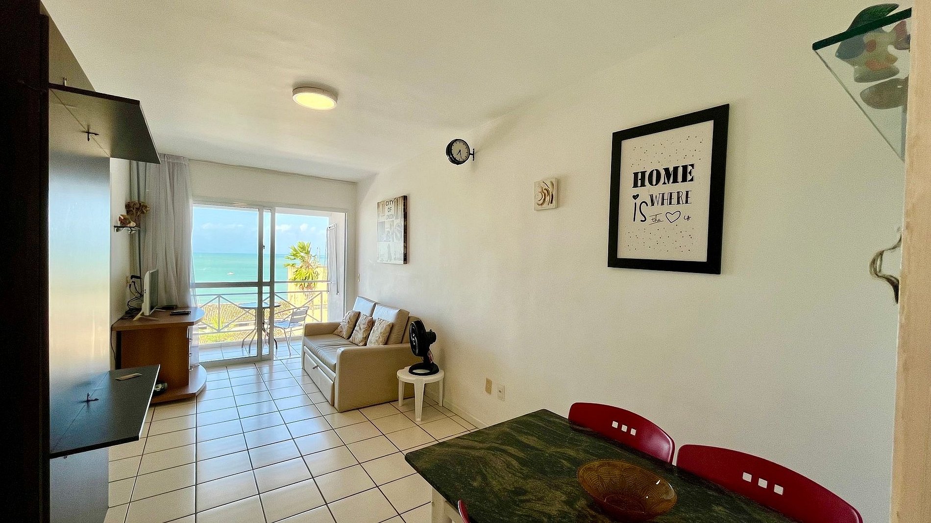 •Sala com sofá, TV Led, DVD divx, Aparelho de som, Mesa Almoço/Jantar e 4 cadeiras.